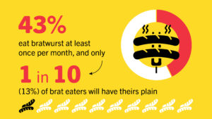 - Brat Consumption: 43% of all survey respondents eat brats at least once per month.